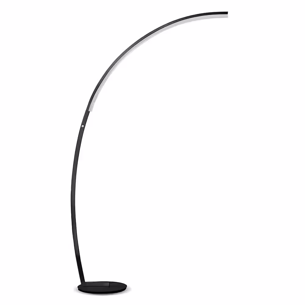 HomeGlam Launch Chrome Dimmable LED Arc Floor Lamp, - Black