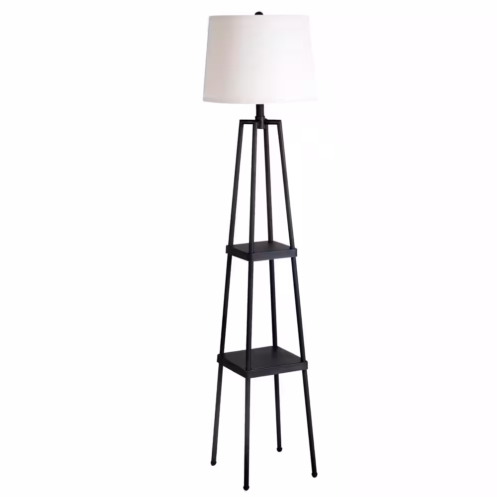 Cresswell 58 in. Distressed Iron Etagere Floor Lamp with Linen Shade