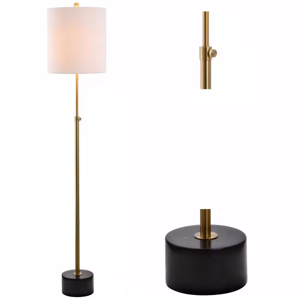 JONATHAN Y Crosby 66 in. Brass/Black Marble Metal Adjustable Height Floor Lamp