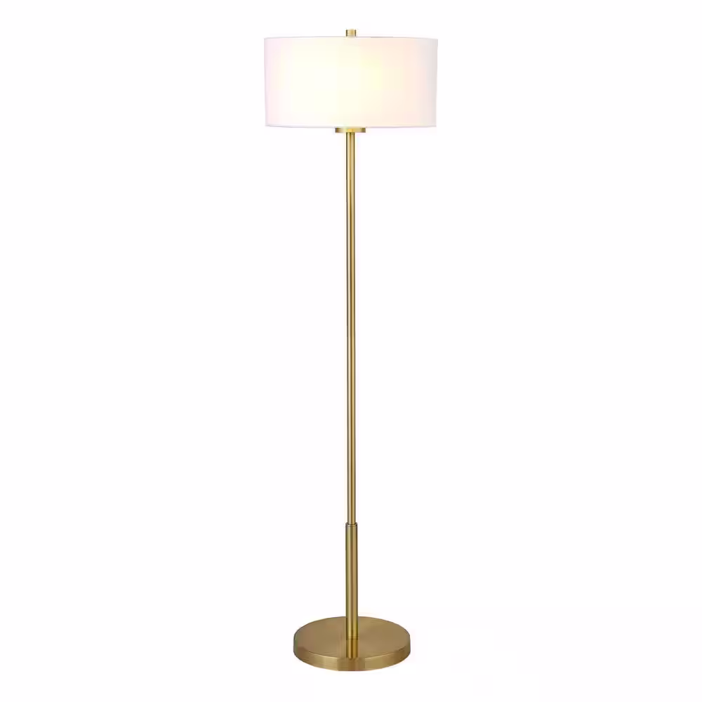 None Trina 61 in. Brushed Brass Metal Floor Lamp with Fabric Shade