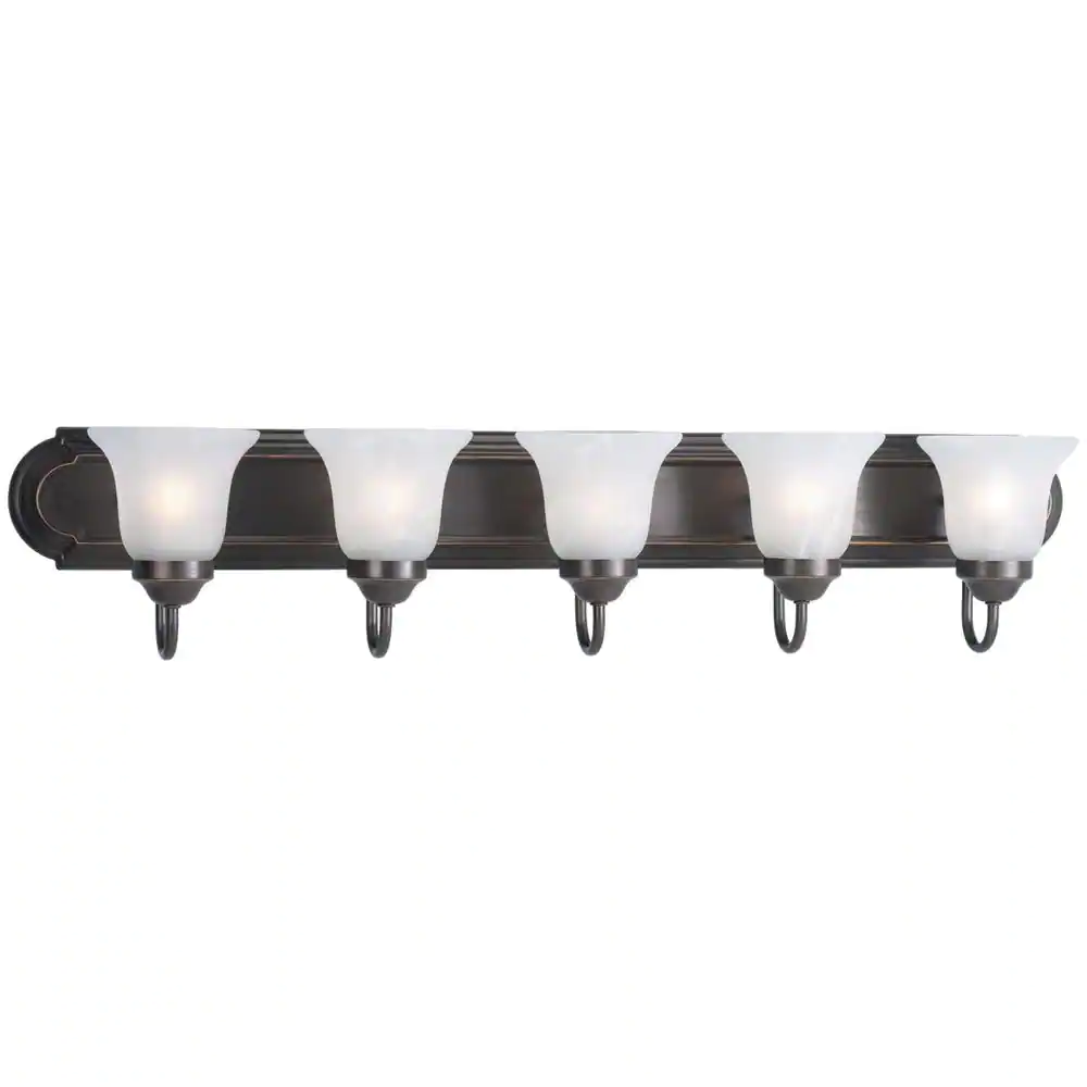 Progress Lighting 36 in. 5-Light Antique Bronze Bathroom Vanity Light with Glass Shades