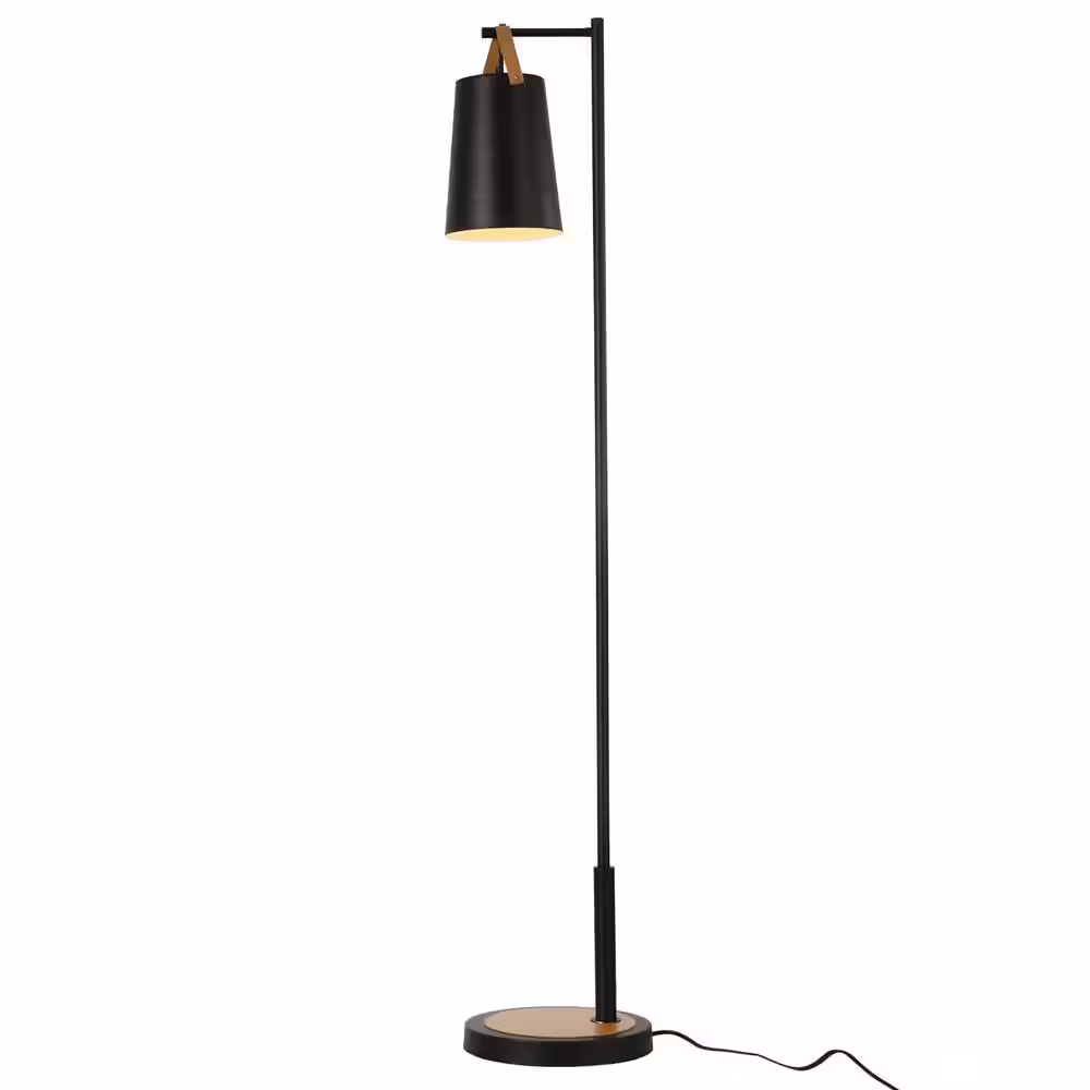 JONATHAN Y Simon 63 in. Pinecone Wood/Metal LED Floor Lamp, Natural/Black