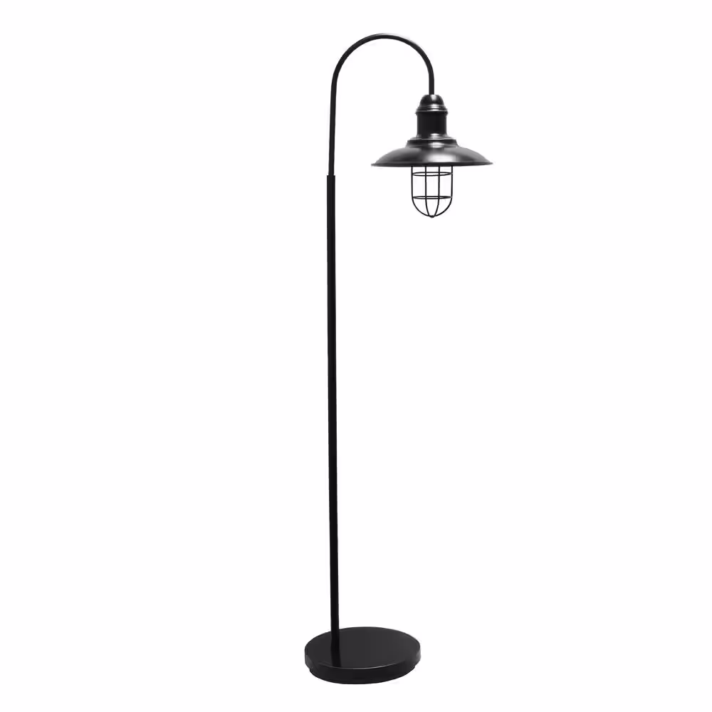 Cedar Hill 61 in. Black Metal Arched Floor Lamp with Shade