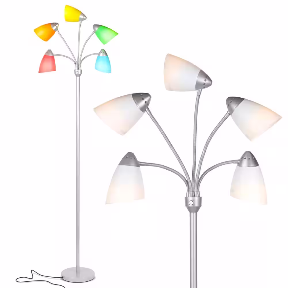 Brightech Medusa 74 in. Silver LED Floor Lamp with 5 Interchangeable Color and White Shades
