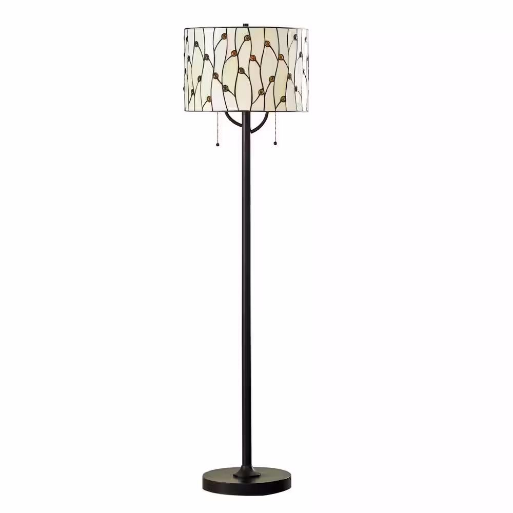 HomeGlam Vines 61 in. ORB Tiffany Floor Lamp with Warm Natural Shade
