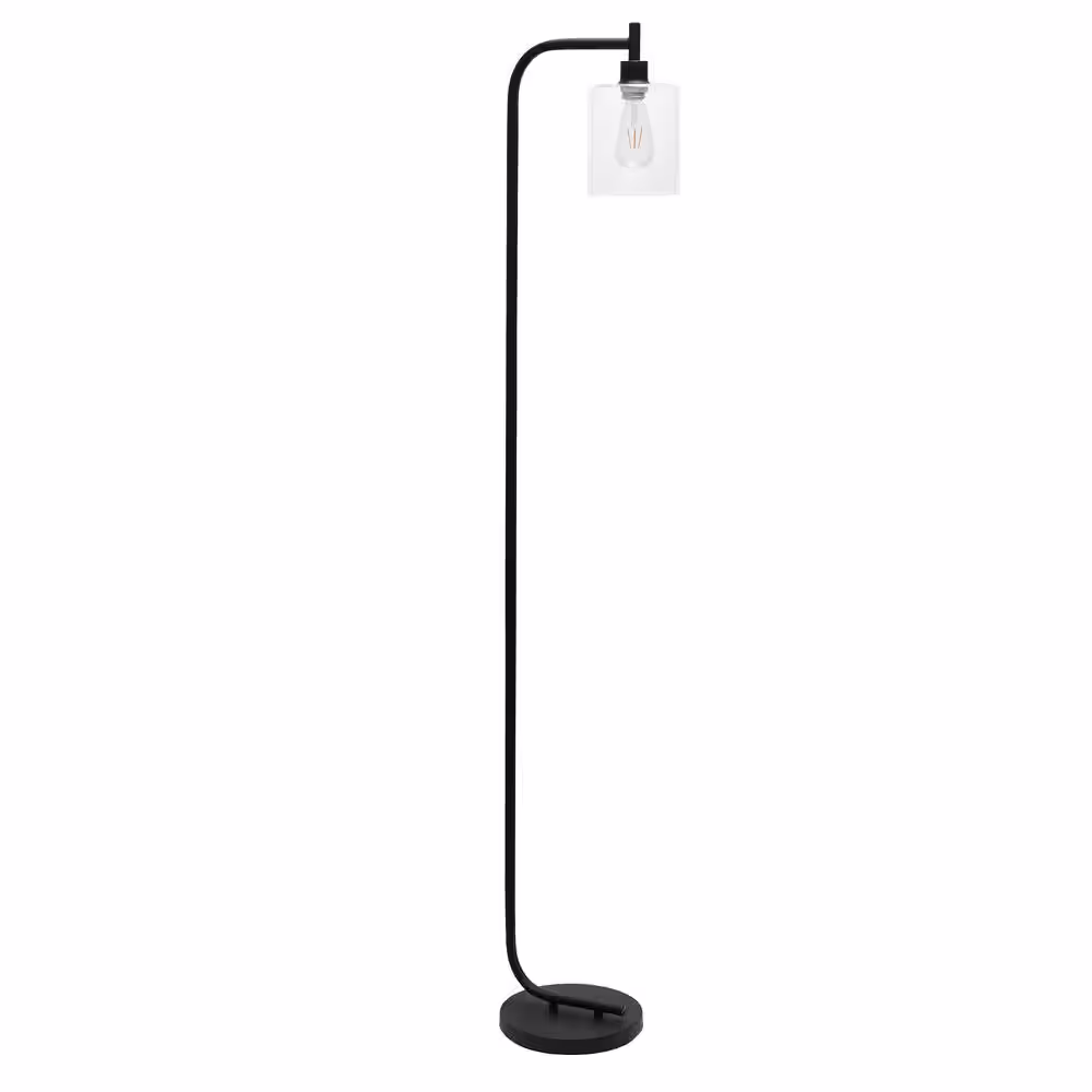Simple Designs 67 in. Black Modern Iron Lantern Floor Lamp with Glass Shade