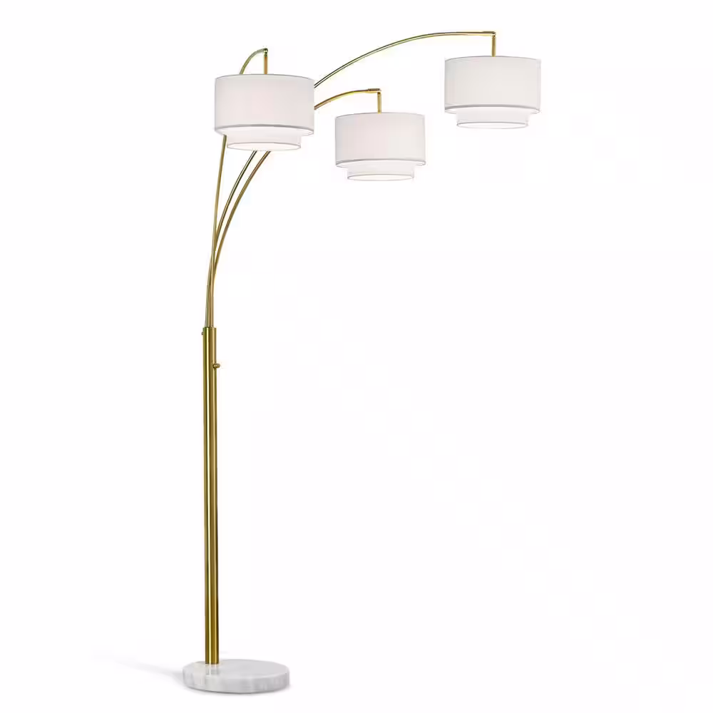 HomeGlam Broadway 83 in. H 3-Light Antique Brass Arch Floor Lamp