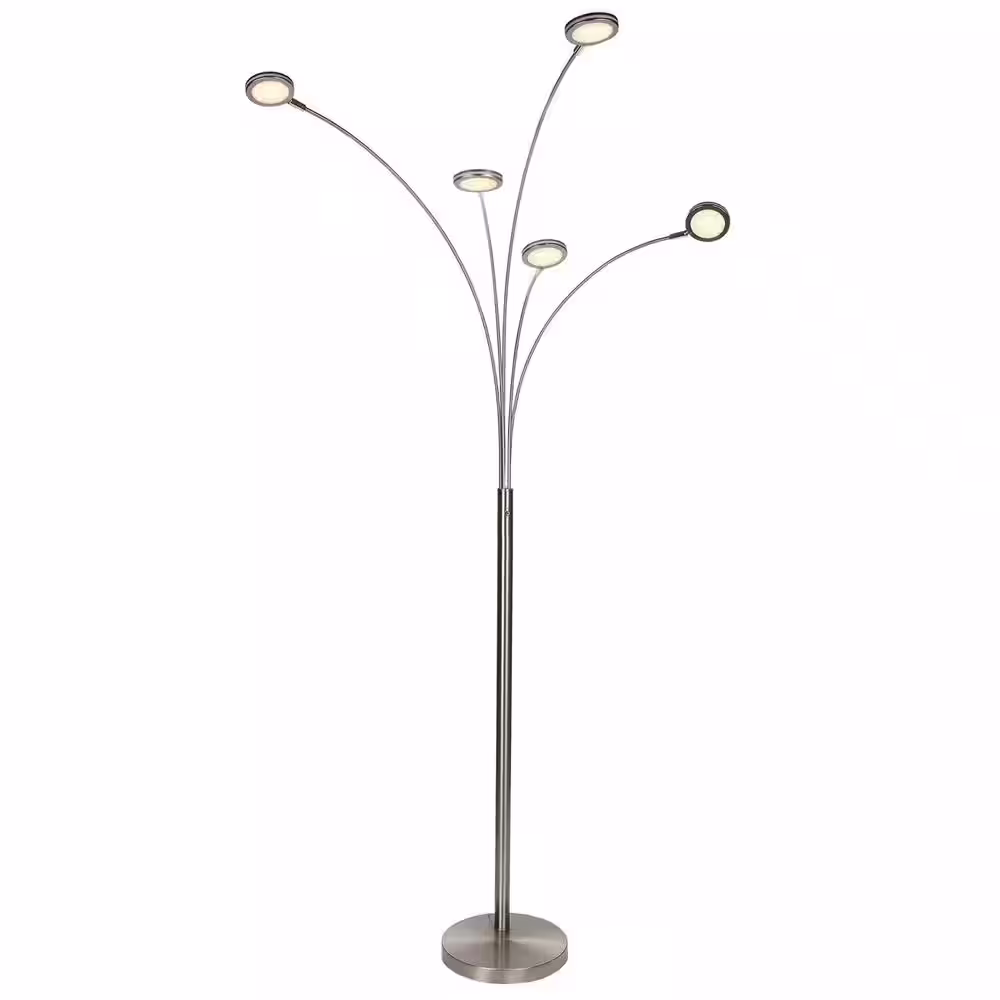 Brightech Orion 5 - 74 in. Satin Nickel Modern LED Arc Floor Lamp with 5 Adjustable Arms and Light Heads
