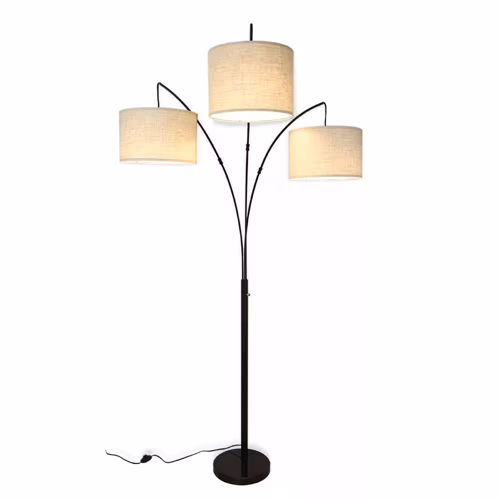 Depuley 79 in. 3-Light Black Arc Floor Lamp, LED Standing Floor Lamp with Hanging Lampshades for Living Room