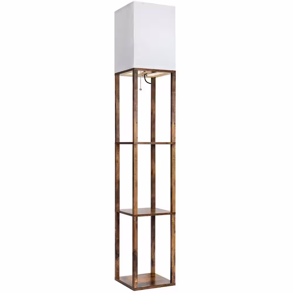 None 63 in. Floor Lamp with Shelves Brown Shelf Floor Lamp for Storage Display
