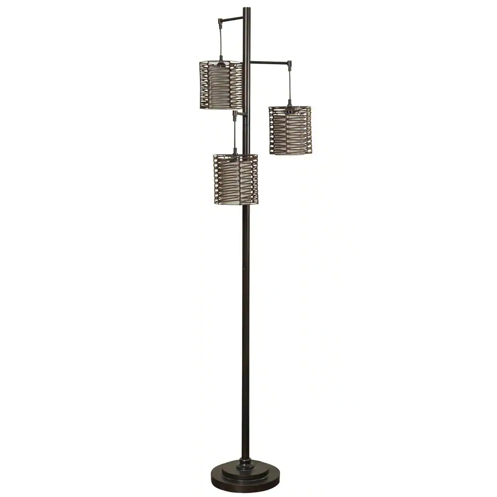 StyleCraft 72 in. Bronze Floor Lamp with Brown Rattan Hardback Fabric Shade