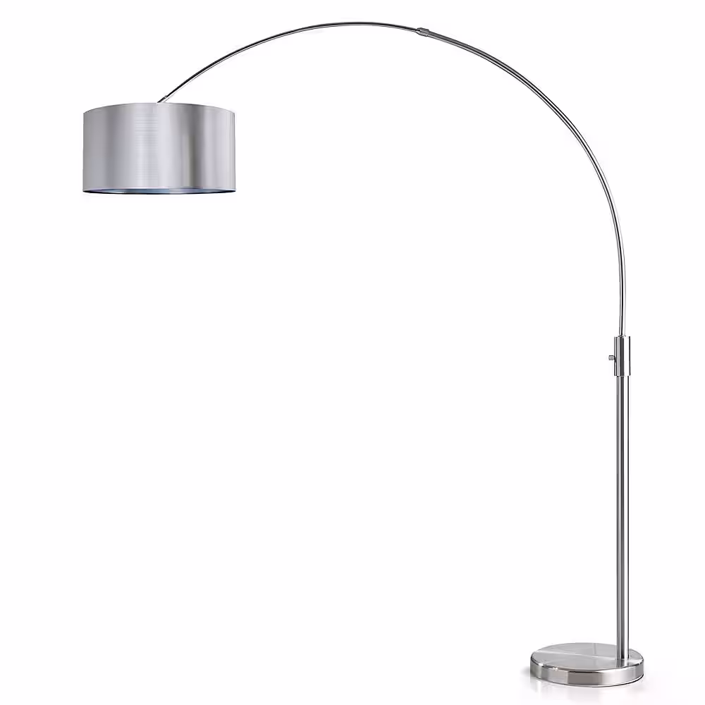 HomeGlam Orbita 82 in. Brushed Nickel Furnish LED Dimmable Retractable Arch Floor Lamp, Bulb Included with Drum Silver Shade
