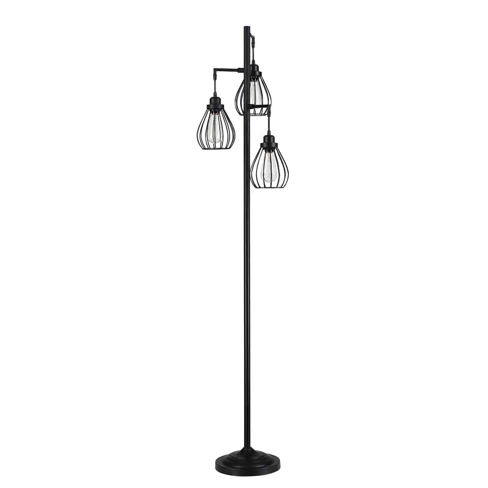 Hukoro Mousse 69 in. 3-Light Tree Floor Lamp with Matte Black Finish and Hanging Steel Cage Shade