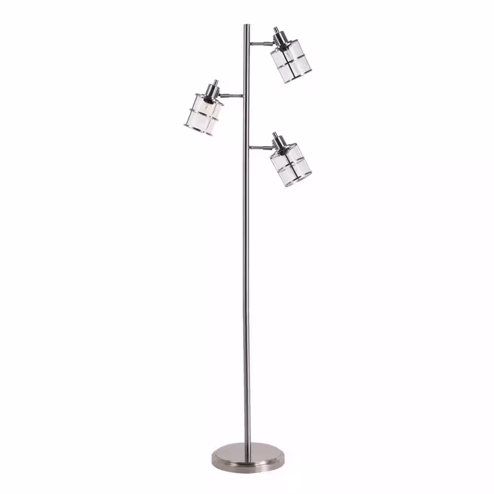 Cresswell 68 in. 3-Head Track Tree Brushed Nickel Floor Lamp with Ribbed Glass Shades