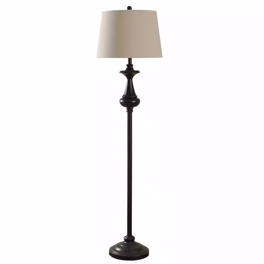StyleCraft 62 in. Bronze Floor Lamp with Natural Linen Hardback Fabric Shade