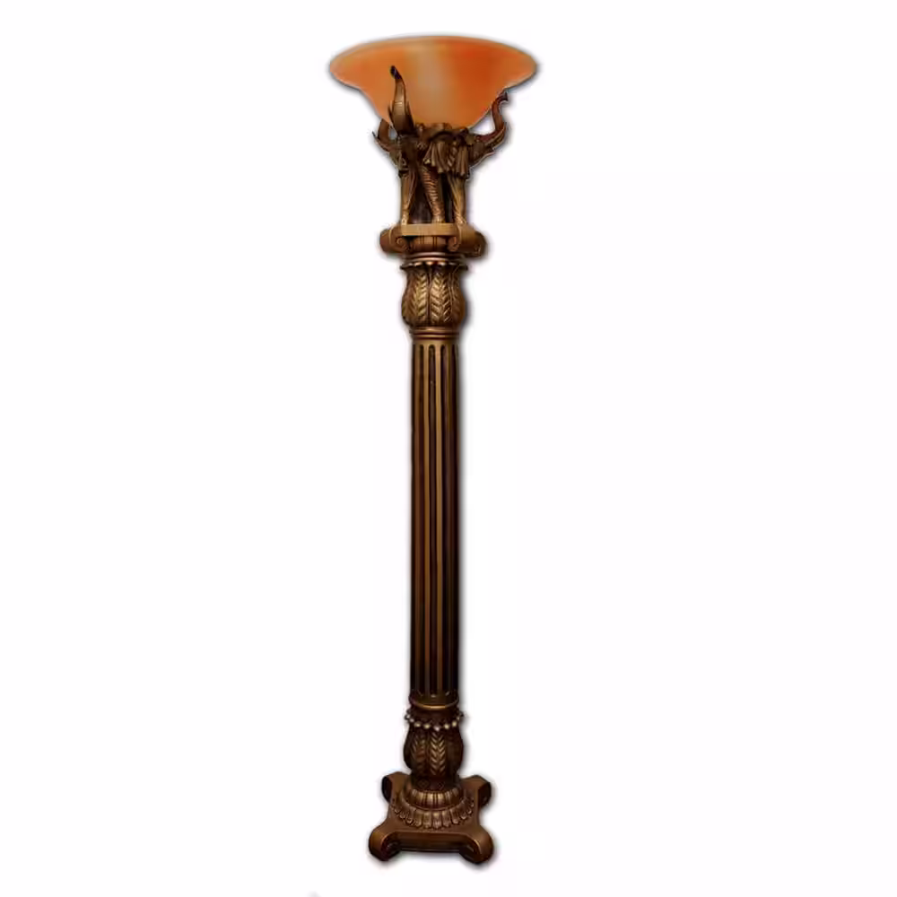 ORE International 72 in. Antique-Gold Elephant Torchiere Floor Lamp