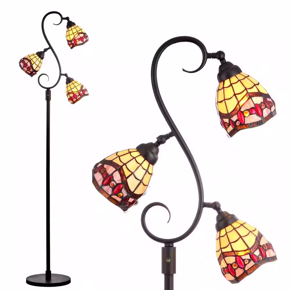 JONATHAN Y Walker Tiffany-Style 70.5 in. Multi-Light Bronze Floor Lamp
