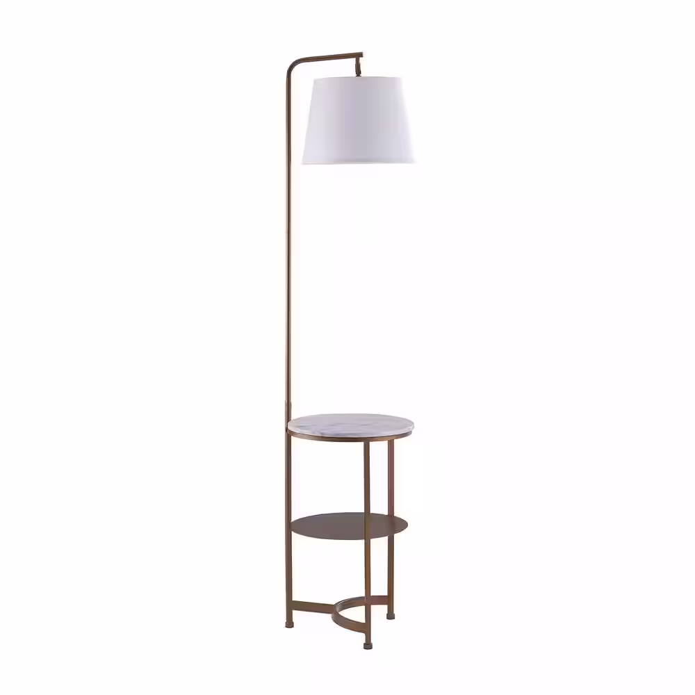 Teamson Home 64 in. H Gold Floor Lamp with White Shades and Faux Marble Table