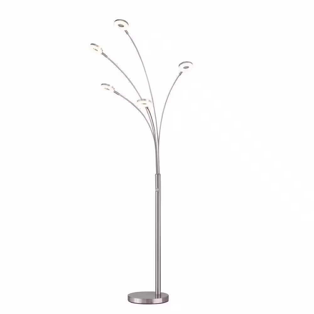 ARTIVA UFO 73 in. Satin Nickel Super Bright LED 5-Arched Floor Lamp with Touch Dimmer