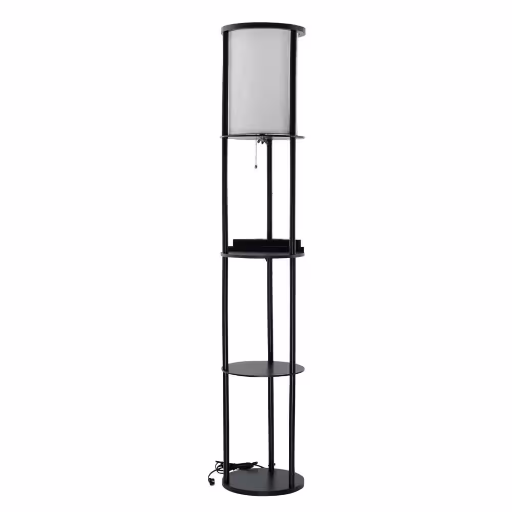 None 62.5 in. Black Shelf Lamp with USB + USBC