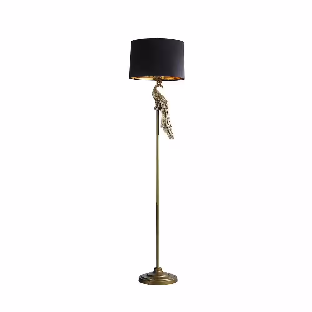 ORE International 64.5 in. Modern Elegance Polyresin Golden Peacock on a Pedestal Standard Floor Lamp