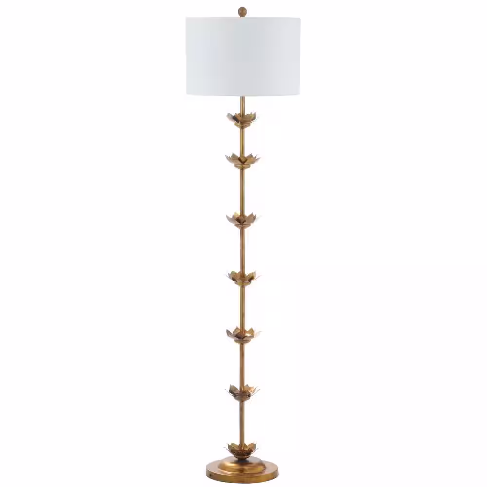 SAFAVIEH Landen Leaf 63.5 in. Antique Gold Floor Lamp with Off-White Shade