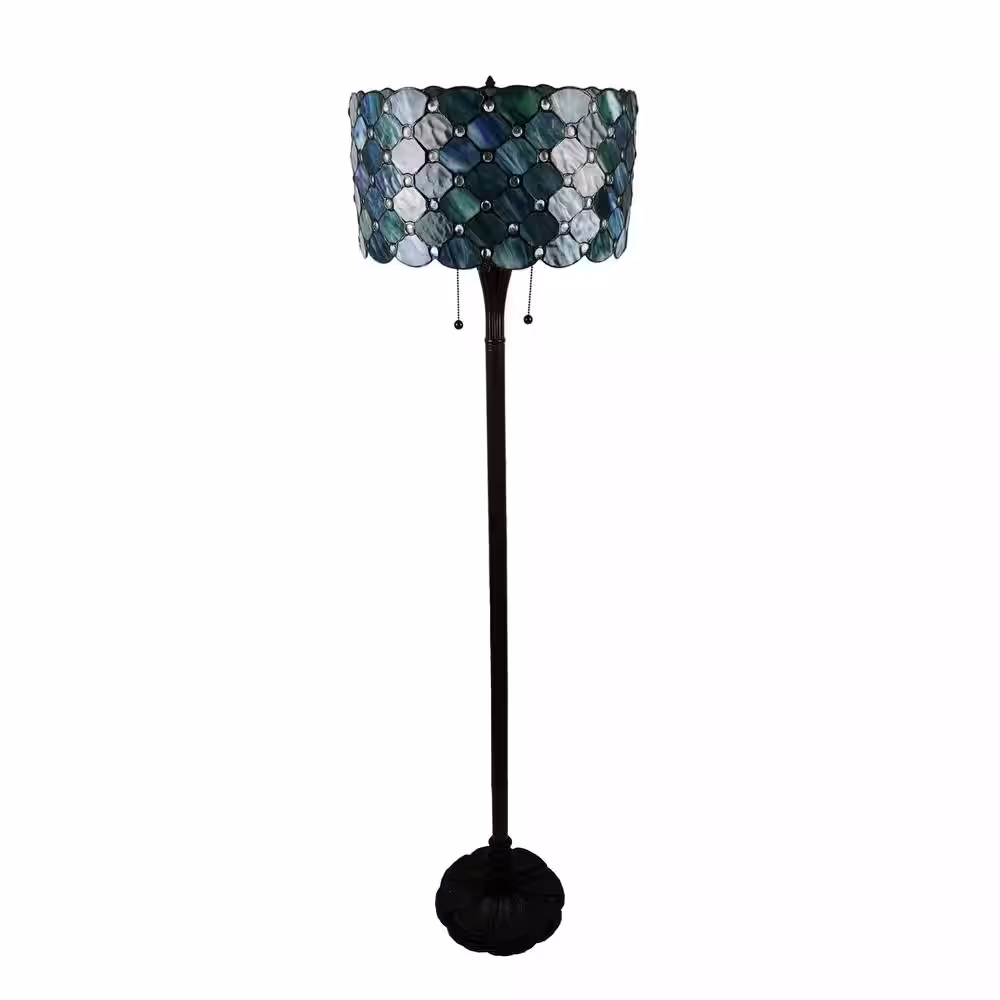 Serena D'italia 58 in. Contemporary Tiffany 2-Light Blue Jeweled Bronze Floor Lamp