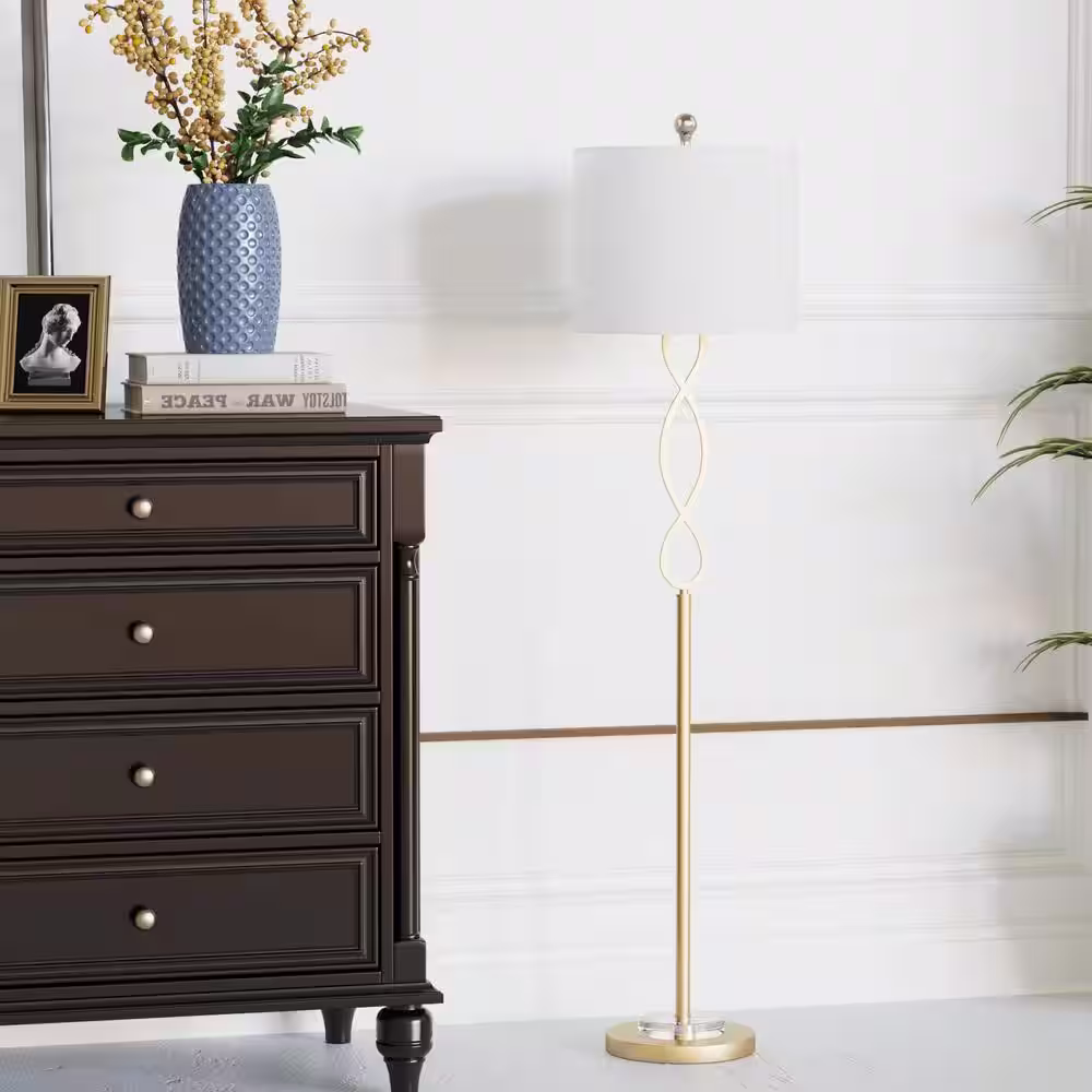 Maxax Montgomery 59 in. Gold Metal Crystal Floor Lamp with White Linen Shade