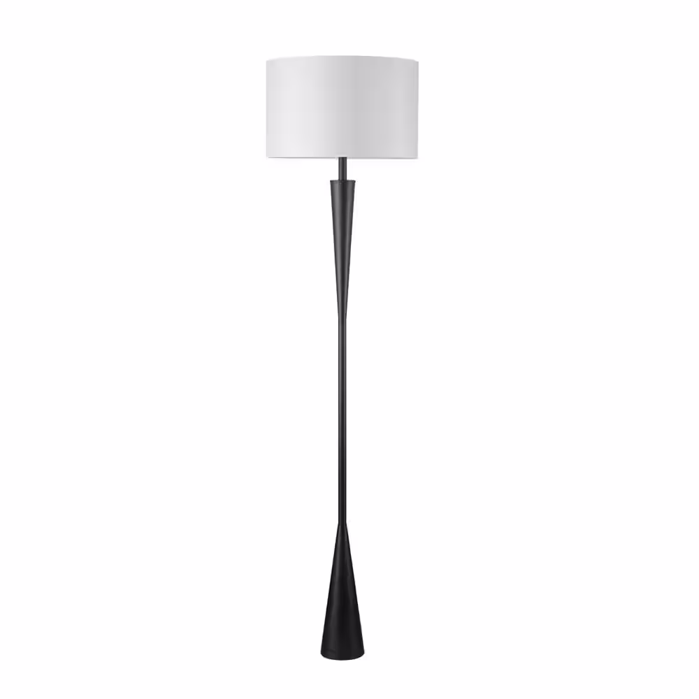 Novogratz x Globe Electric Temple 70 in. Matte Black Floor Lamp with White Fabric Shade