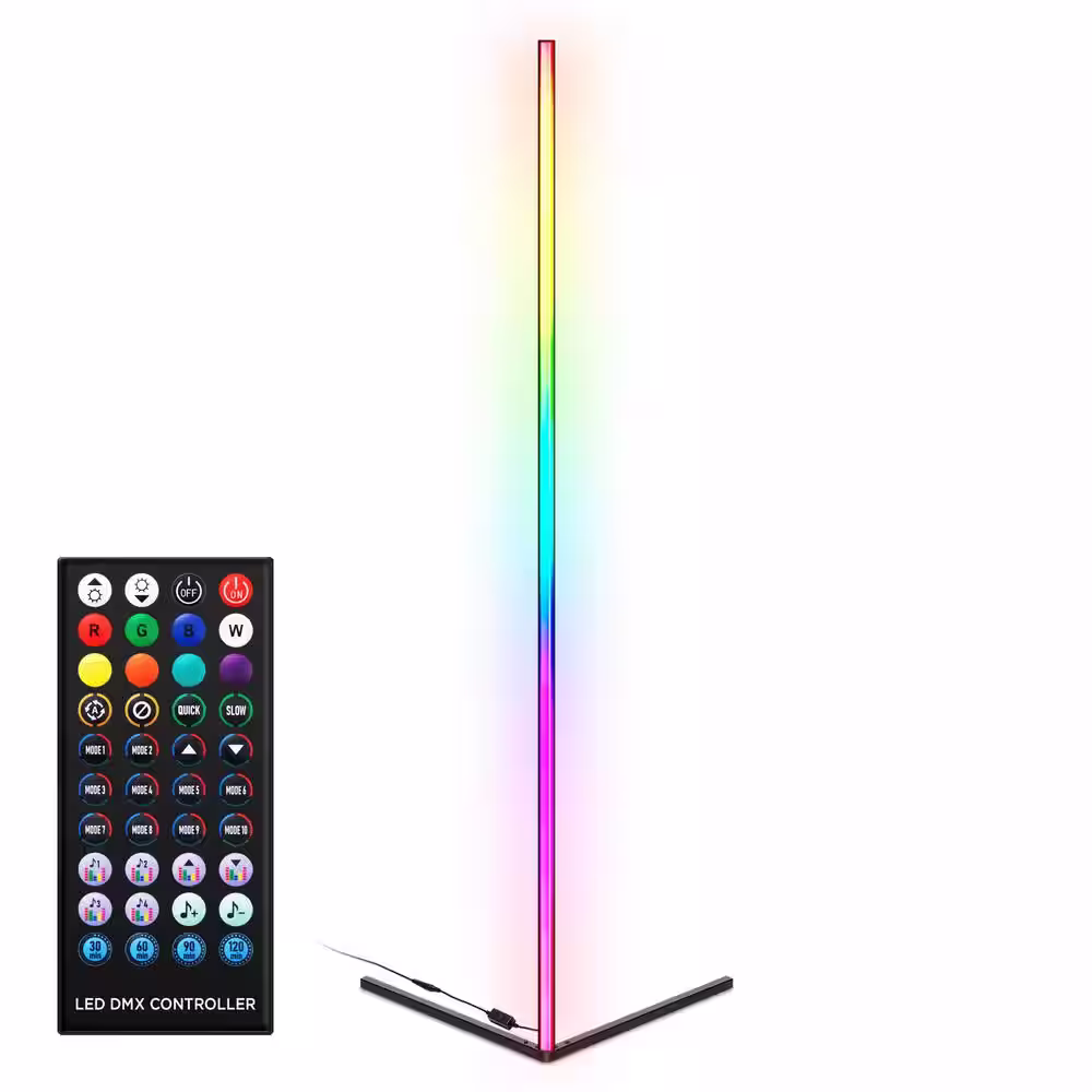 Merkury Innovations 4.6 ft. Multi-Color RGBIC Indoor Corner Lamp with Remote