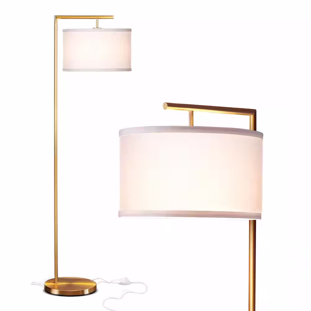 Brightech Montage Modern 60 in. Antique Brass LED Floor Lamp with White Fabric Drum Shade