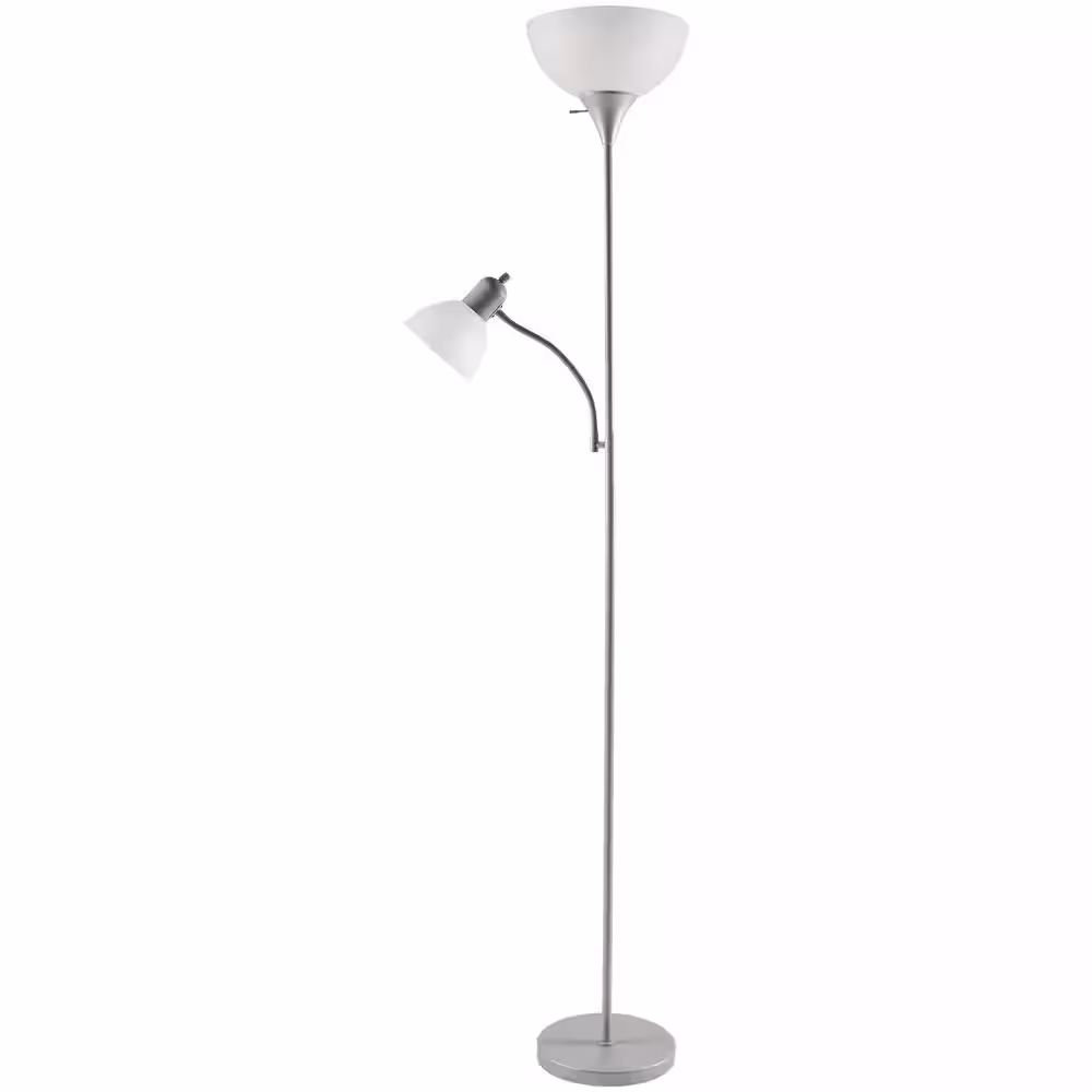 Hampton Bay 71.5 in. Silver Mother/Daughter Floor Lamp with LED Bulb Included