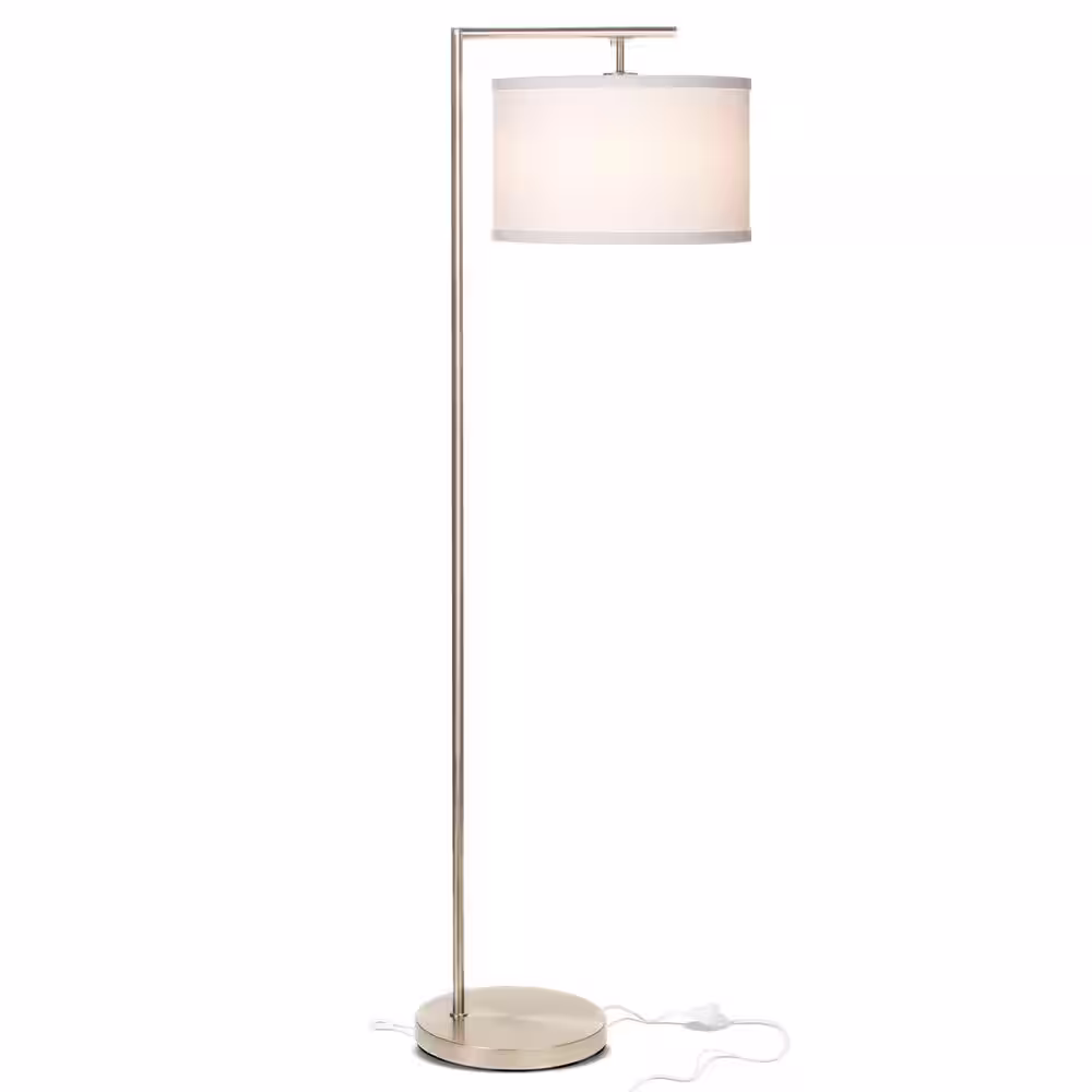 Brightech Montage Modern 60 in. Satin Nickel LED Arc Floor Lamp with White Fabric Drum Shade