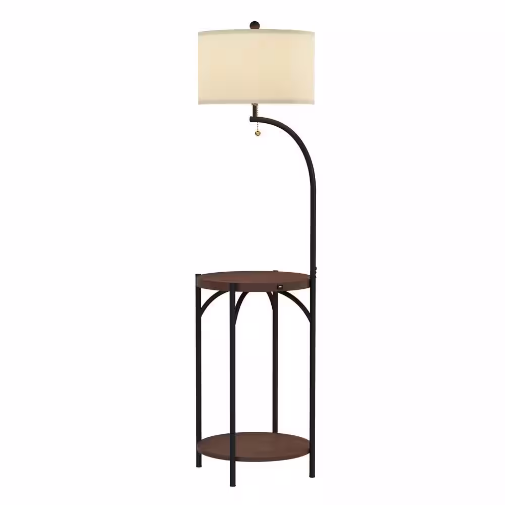 Maxax New York 65 in. Wood Grain and Black Metal Floor Lamp with Table Shelves