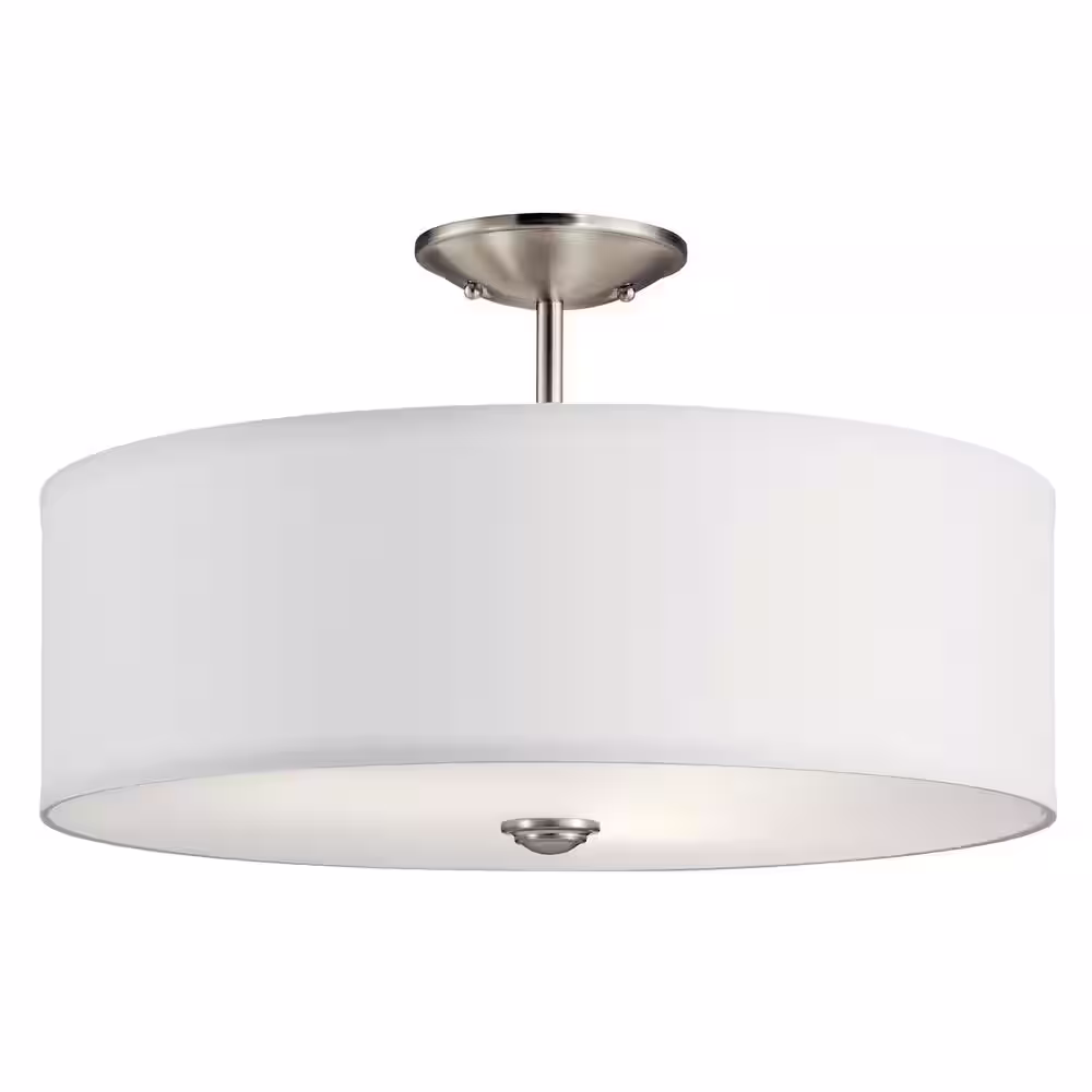 KICHLER Shailene 18 in. 3-Light Brushed Nickel Round Hallway Transitional Semi-Flush Mount Ceiling Light with Microfiber Shade
