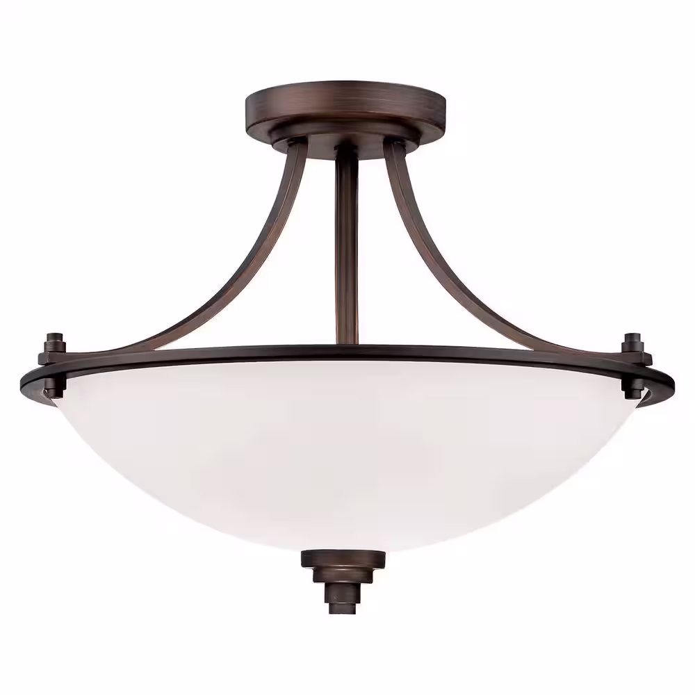 Millennium Lighting 3-Light Rubbed Bronze Semi Flush Mount with Etched White Glass