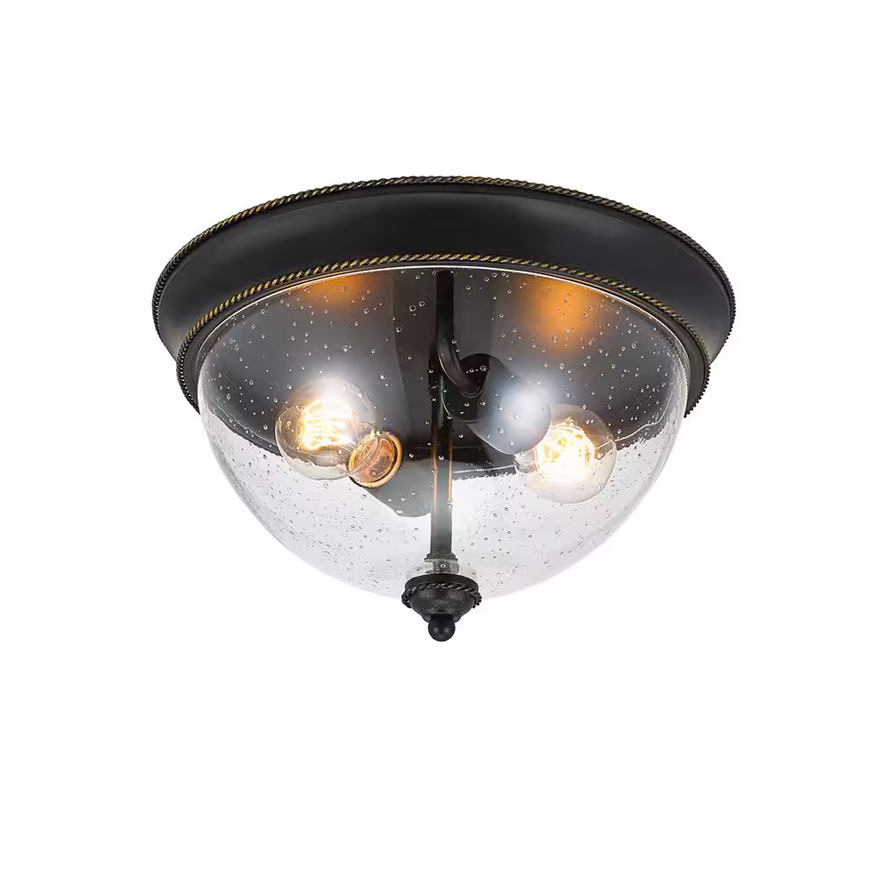 Hampton Bay 2-Light 13 in. Bronze Flush Mount Ceiling Light
