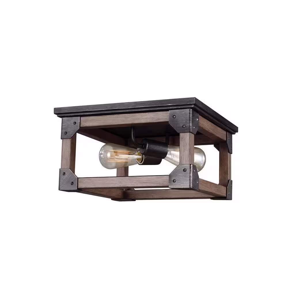 Dawn 2-Light Barnwood Matte Black Flush Mount Ceiling Light Farmhouse Rustic Rectangle