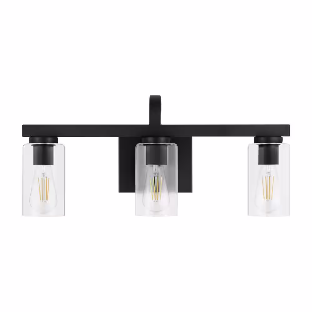 Merra 17 in. 3-Light Modern Matte Black Vanity-Light with Clear Glass Shade