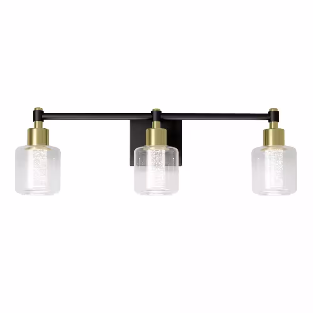 Artika Champagne Globe 26 in. 3-Light Black and Gold Modern Integrated LED 5 CCT Vanity Light Bar for Bathroom