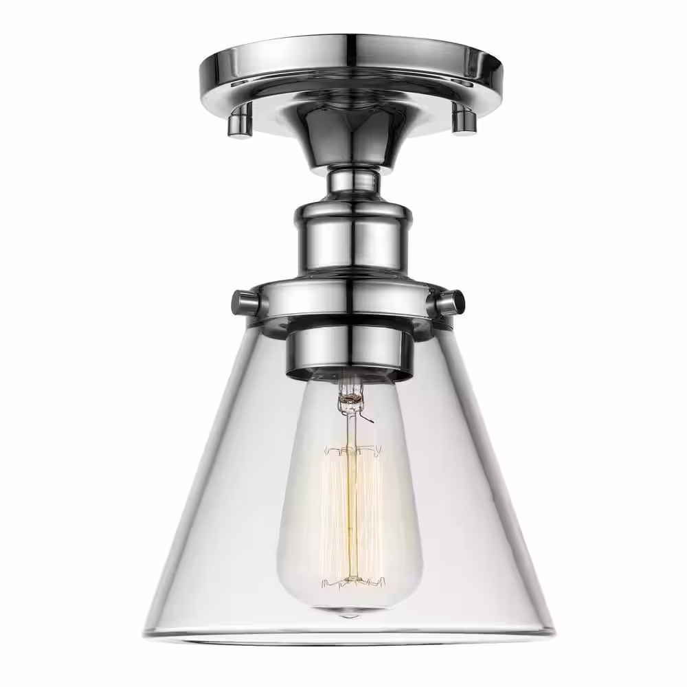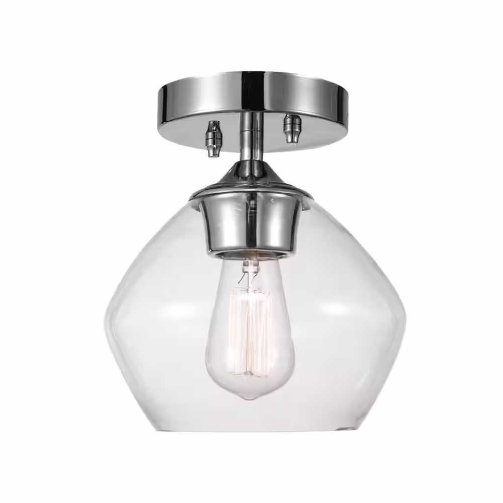 Globe Electric Harrow 1-Light Chrome Semi-Flush Mount Ceiling Light with Clear Glass Shade
