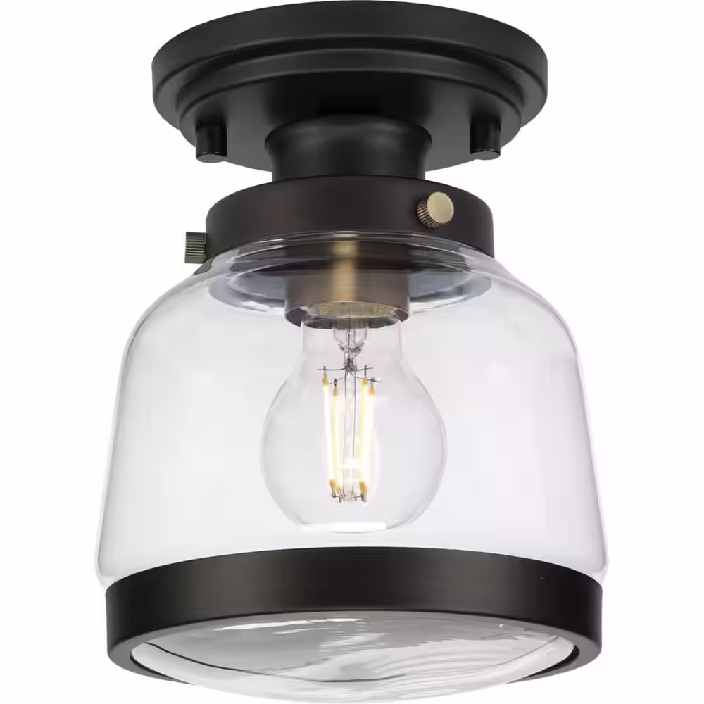 Progress Lighting Judson 8 in. 1-Light Antique Bronze Semi-Flush Mount Light for Bedroom or Hallway Farmhouse