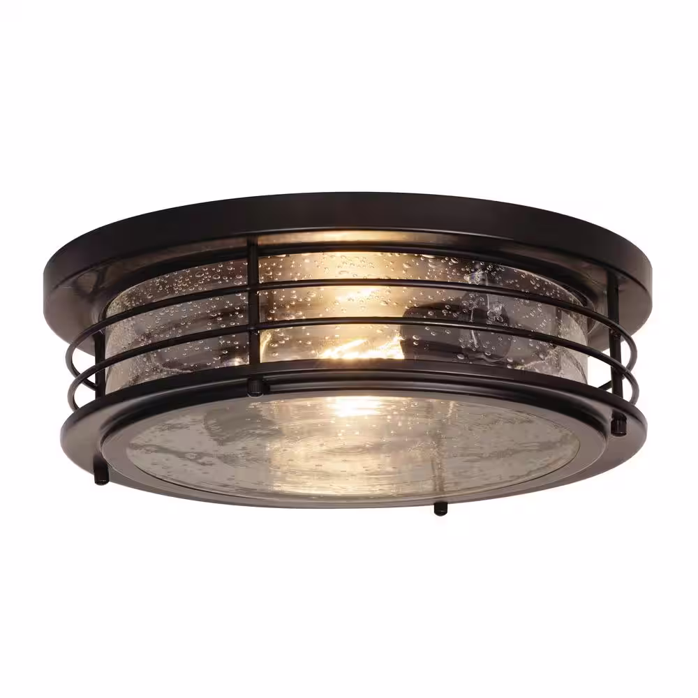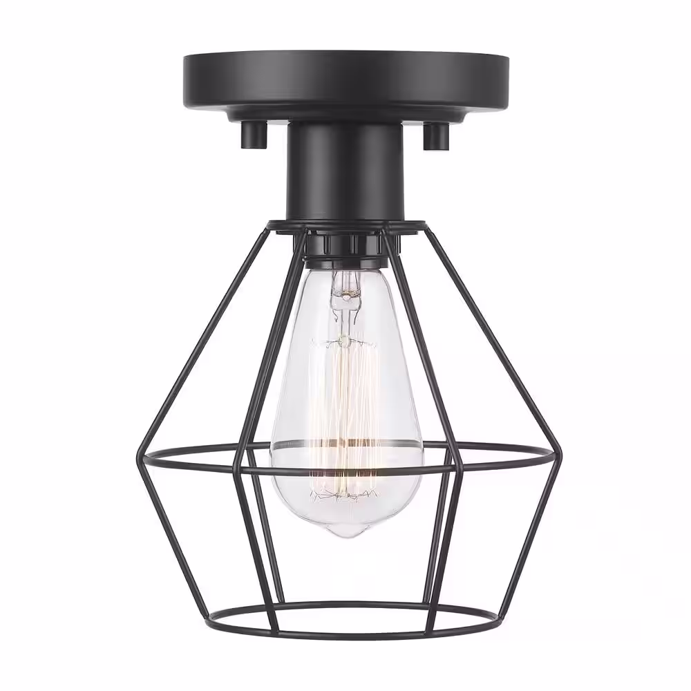 Hampton Bay Bryson 1-Light Matte Black Caged Shade Flush Mount