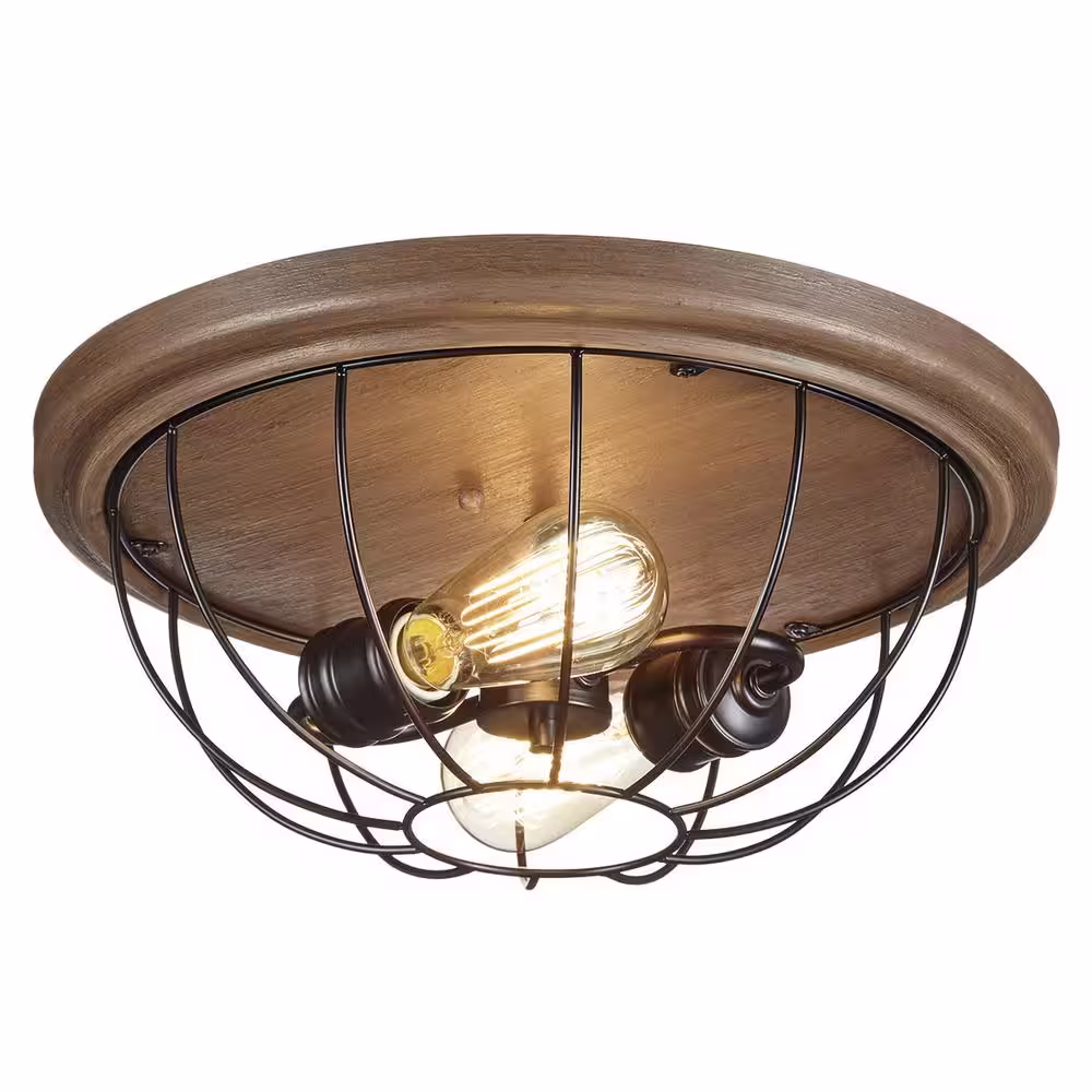 Home Decorators Collection Keaton Collection 15-3/4 in. Bronze Industrial 2-Light Bedroom Flush Mount Light with Open Cage Frame Two Bulbs Included