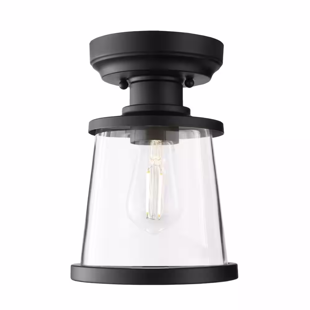Hampton Bay Wilhelm 12 in. 1-Light Black Industrial Farmhouse Semi-Flush Mount Ceiling Light Fixture with Metal Shade
