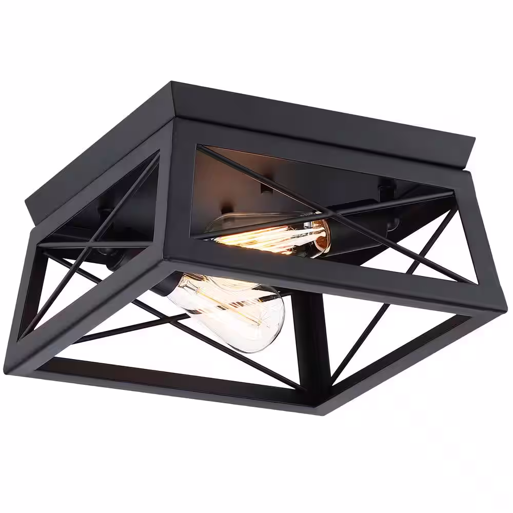 Pia Ricco 12 in. 2-Light Matte Black Flush Mount
