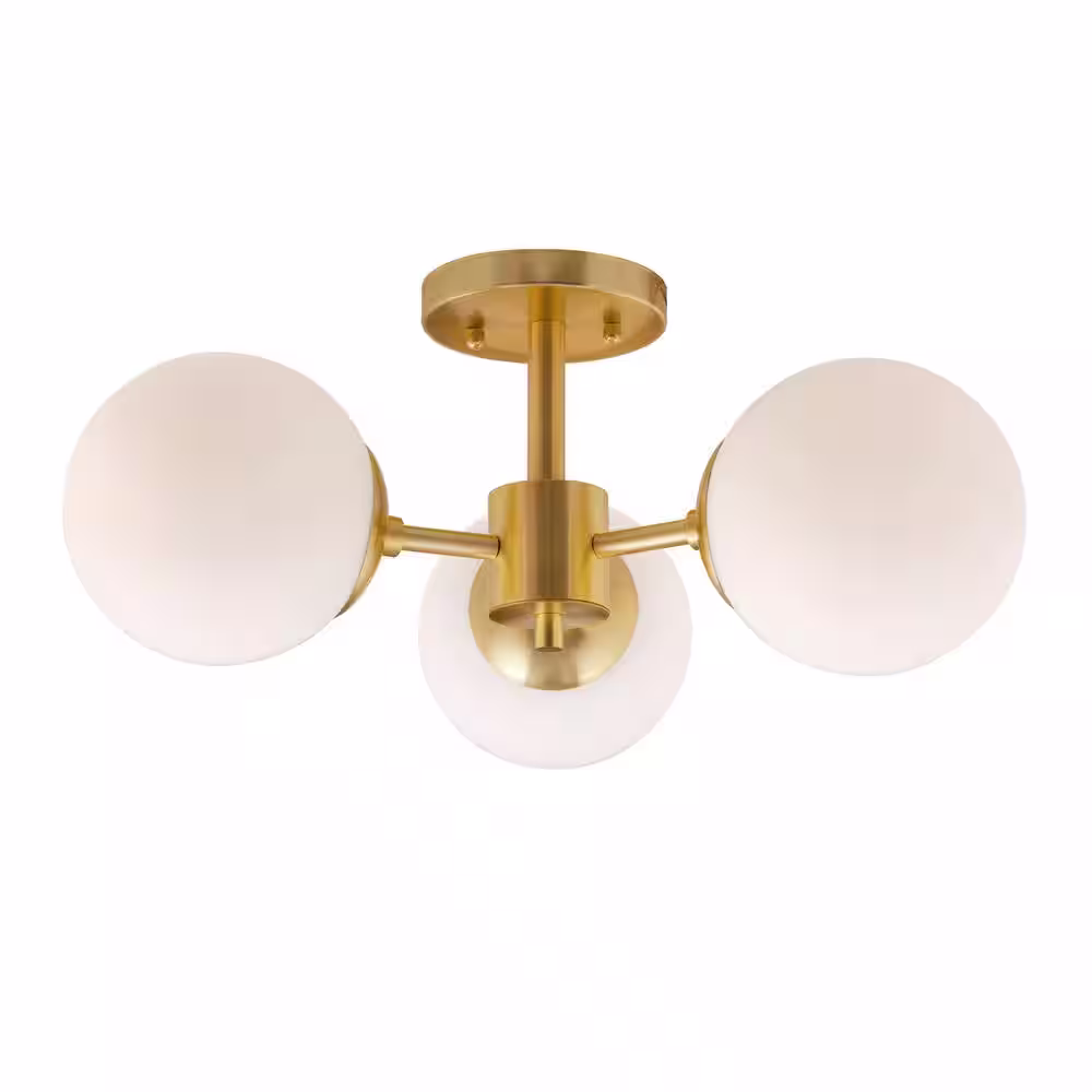 None Farrell 18 in. 3-Light Soft Gold Semi Flush Mount with Satin Opal Glass