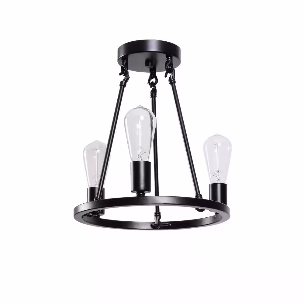 Hampton Bay Stratton 14 in. 3-Light Black Semi-Flush Mount