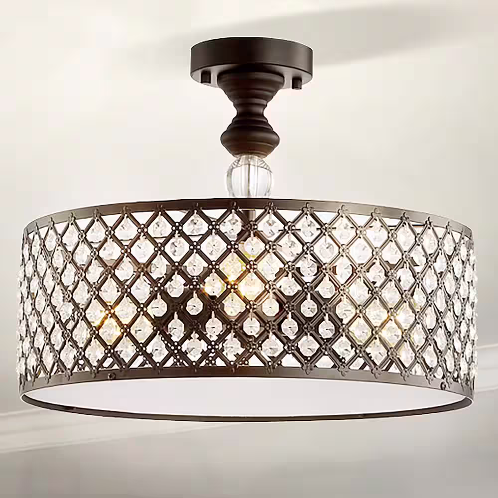 JONATHAN Y Elise 17 in. 3-Light Crystal/Metal Drum Semi-Flush Mount, Black