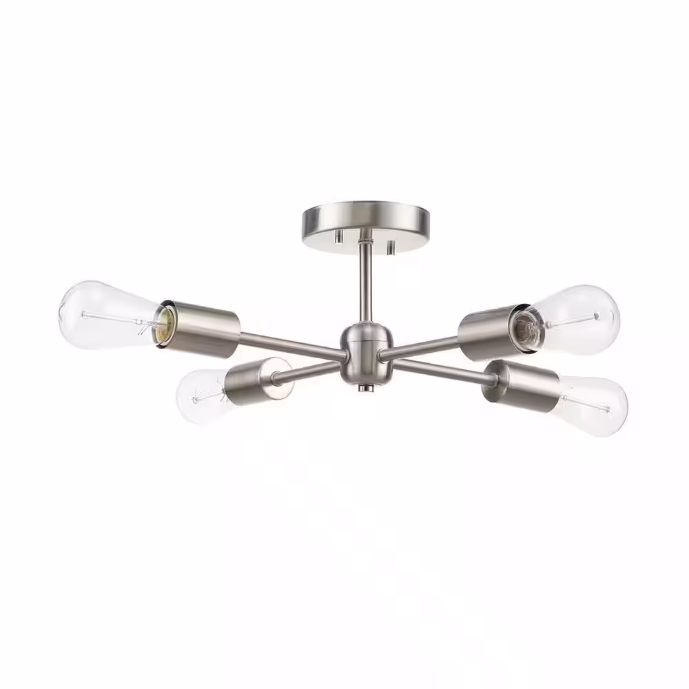 Globe Electric Vane 17 in. 4-Light Brushed Nickel Semi-Flush Mount